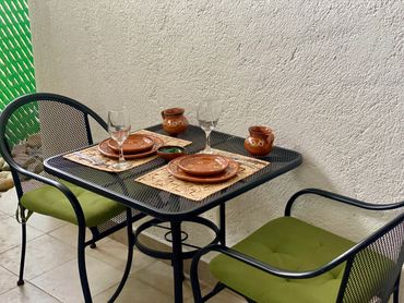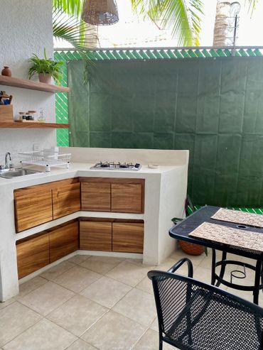 There is no private pool. You have access to shared areas, which include the pool, gardens, terrace, and grill. A main road is nearby, so traffic noise may be bothersome to some guests. Earplugs are provided for your use.